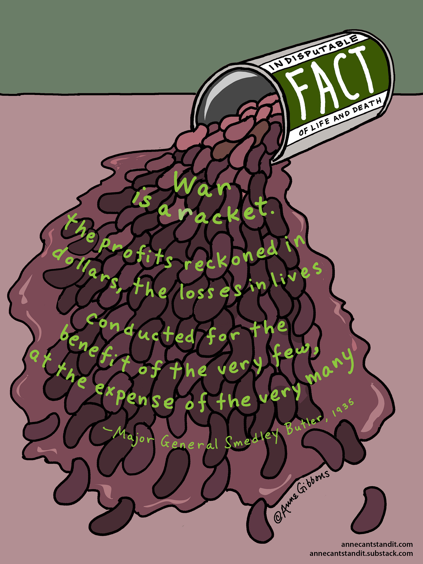 Smedley Butler spilled the beans . . .. . and they're worth digesting!Anne GibbonsOct 20, 202384356ShareTake Back Power with Shabnam Palesa MohamedPeace in our Lifetime. We Are The 99%Read more2 years ago · 37 likes · 13 comments · Shabnam Palesa MohamedJon RappoportThe War in IsraelRead more2 years ago · 297 likes · 33 comments · Jon RappoportAnne Can't Stand It! is a reader-supported publication. To receive new posts and support my work, consider becoming a free or paid subscriber.SubscribePreviousNext